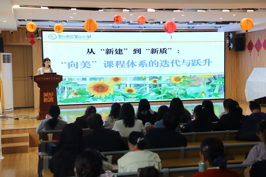课堂观摩后,该校党支部书记方媛媛作题为《从“新建”到“新质”:“向美”课程体系的迭代与更新》的专题分享。她系统阐释了学校课程体系的演进路径与育人逻辑,为学员们提供了课程建设与学校高质量发展的“二小样本”。