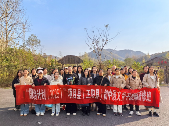 11月11日,“国培计划(2025)”项目县——正阳县初中语文骨干教师研修班的全体学员,在班主任郭子悦老师的带领下,赴羊山中学与郝堂村开展为期一天的实践观摩活动。本次活动聚焦语文教学与乡村教育振兴,以实地体验促专业成长,以文化浸润强教育使命。