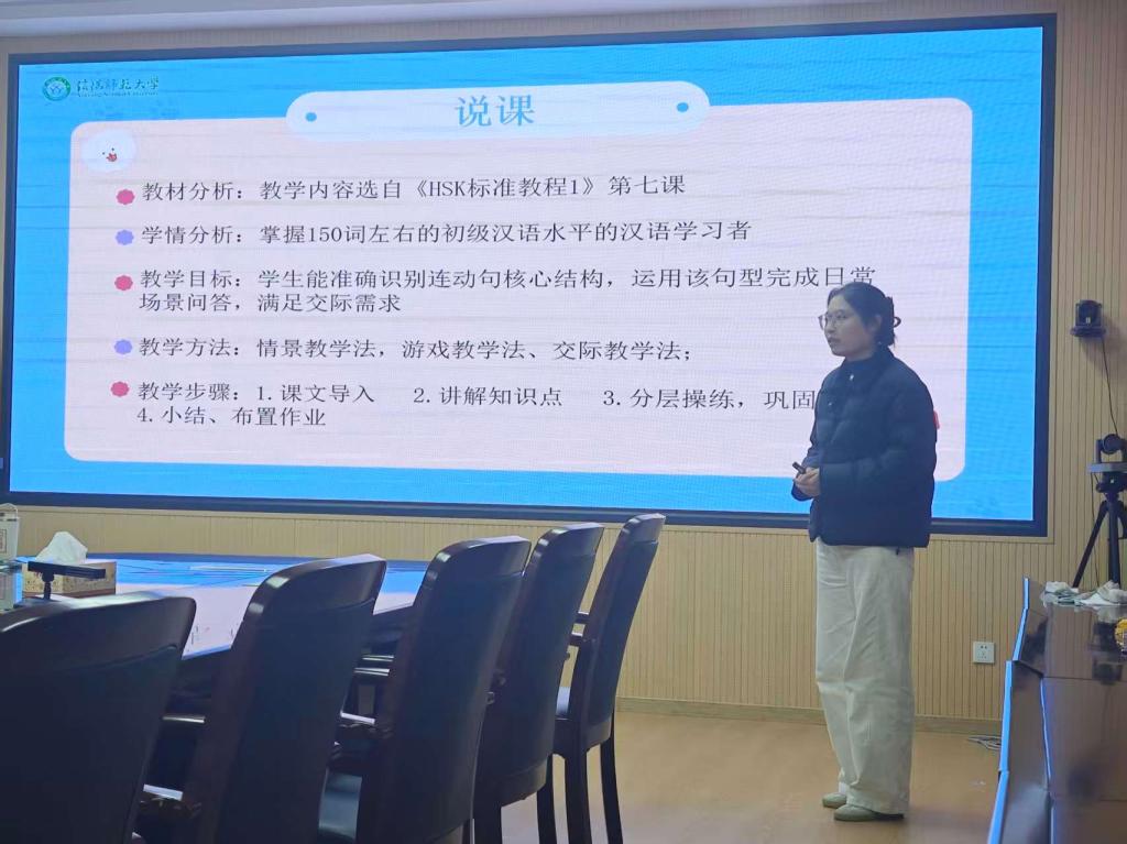 2025年11月10日上午8:30,文学院2025年国际中文教育硕士教学技能大赛在3-7会议室顺利举行。十位国际中文教育专业研究生与留学生同台竞技,全体在校国际中文教育专业研究生及留学生到场观摩,共同见证这场兼具专业性与跨文化特色的教学实战盛宴。