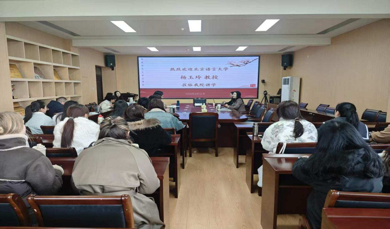 2026年3月11日上午,北京语言大学杨玉玲教授应邀莅临我院,作题为“新形势下综合课教学原则与方法”的学术讲座。讲座由文学院副院长朱敏霞主持,国际中文教育专业部分教师及该专业全体研究生到场参加。