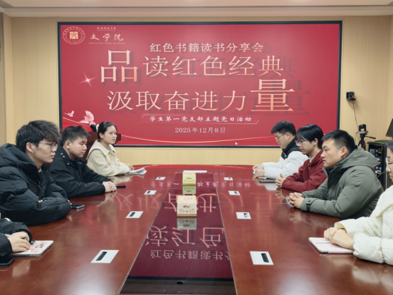为扎实推进党史学习教育常态化长效化,引导青年党员从红色经典中汲取精神养分、筑牢信仰根基,12月8日,我院学生第一党支部在人文楼3-7教室举办“品读红色经典,汲取奋进力量”主题党日读书分享会。活动由党支部书记陈辉主持,学生第一党支部全体党员参加。