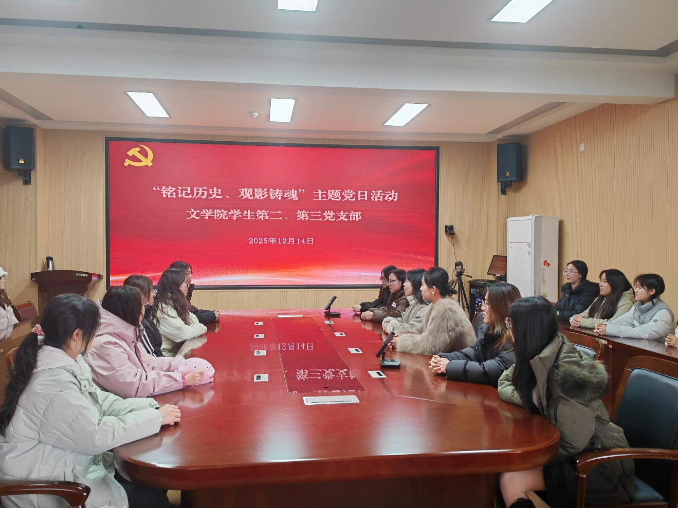 为传承红色基因,弘扬伟大爱国精神,进一步强化学生党员的责任担当与使命意识,12月14日下午,我院学生第二、第三党支部联合组织全体学生党员开展“铭记历史、观影铸魂”主题党日活动,集体观看革命题材电影《志愿军:浴血和平》。活动由文学院学生第二党支部书记崔越、学生第三党支部书记柳家琪组织开展。