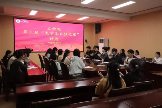 为深入贯彻习近平新时代中国特色社会主义思想,全面落实立德树人根本任务,持续推进文学院学风建设。9月28日,文学院在人文楼会议室成功举办2025年度“自强之星”评选初赛。本次活动旨在弘扬自强不息、奋发向上的精神,充分发挥优秀学生的示范引领作用。团委书记陈辉及学生会各部门成员出席并担任评委。