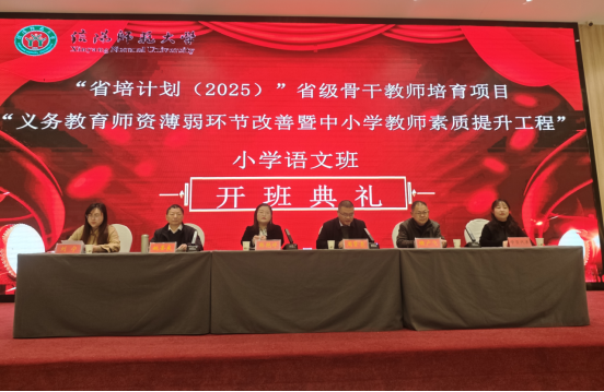 10月26日上午,省级骨干教师培育项目小学语文教师培训班开班典礼于信阳市华悦酒店成功举行。出席此次典礼的有信阳师范大学河南省中小学校长研修院副院长兼教务副处长韩艳婷、信阳师范大学文学院党委书记周贤亮、文学院院长姚圣良、副院长缑广飞、培训项目班主任刘宁,以及来自河南省各地市的160余名小学语文教师。典礼由文学院党委书记周贤亮主持。