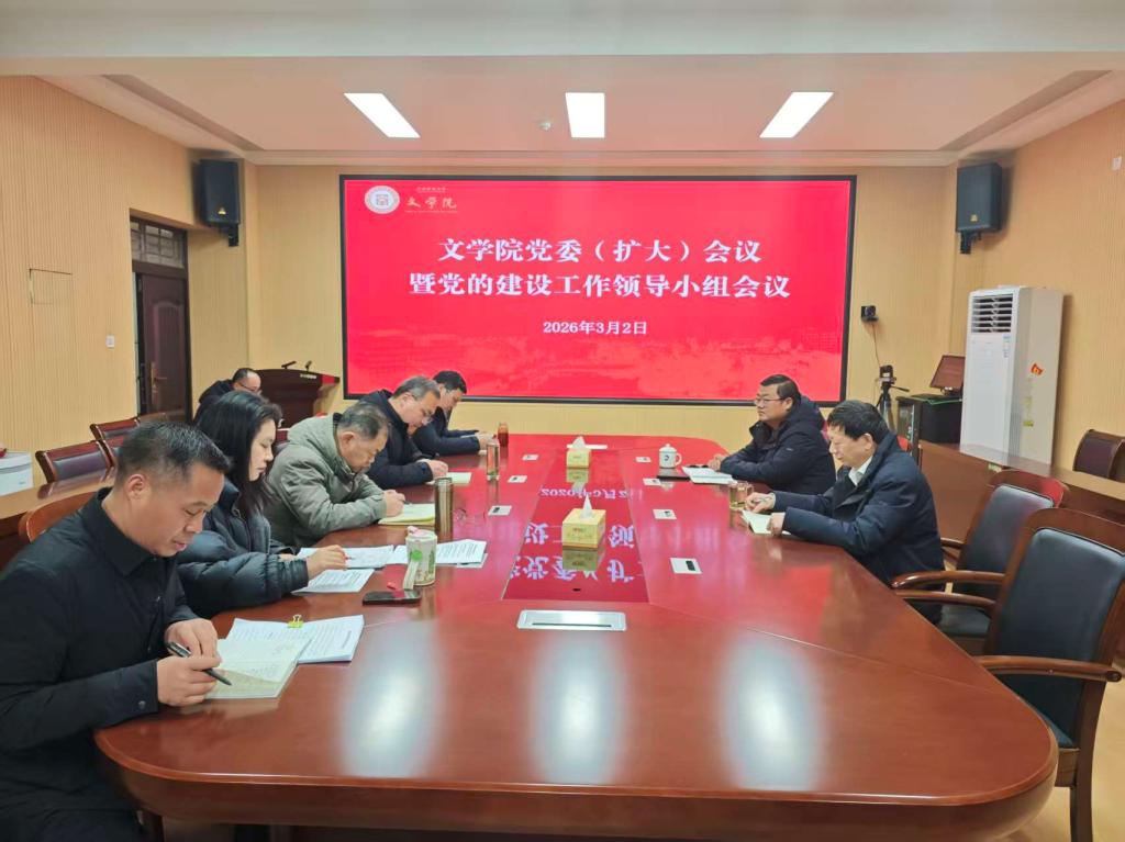 3月2日,文学院召开党委(扩大)会议暨党的建设工作领导小组会议,深入学习习近平总书记关于树立和践行正确政绩观的重要论述和重要指示精神,传达上级有关要求,部署学院开展学习教育工作。文学院党委书记周贤亮主持会议并讲话,全体班子成员、党支部书记、科级干部参加会议。