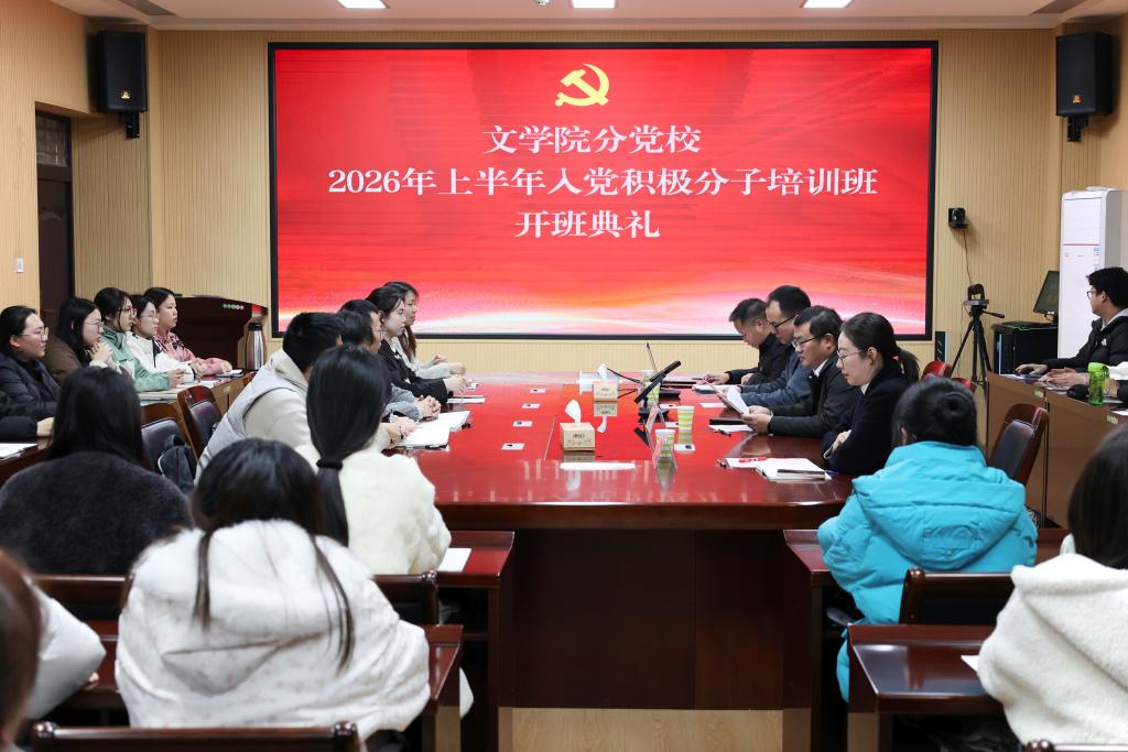 为严把党员发展“入口关”,引导入党积极分子筑牢信仰之基、补足精神之钙,3月19日,文学院分党校2026年上半年入党积极分子培训班开班典礼在人文楼3-7党员活动之家举行。校党委组织部副部长冀鹏出席并作首场辅导报告,文学院党委书记周贤亮、副书记王家宏、专职组织员郭子悦及63名学员共同参加。