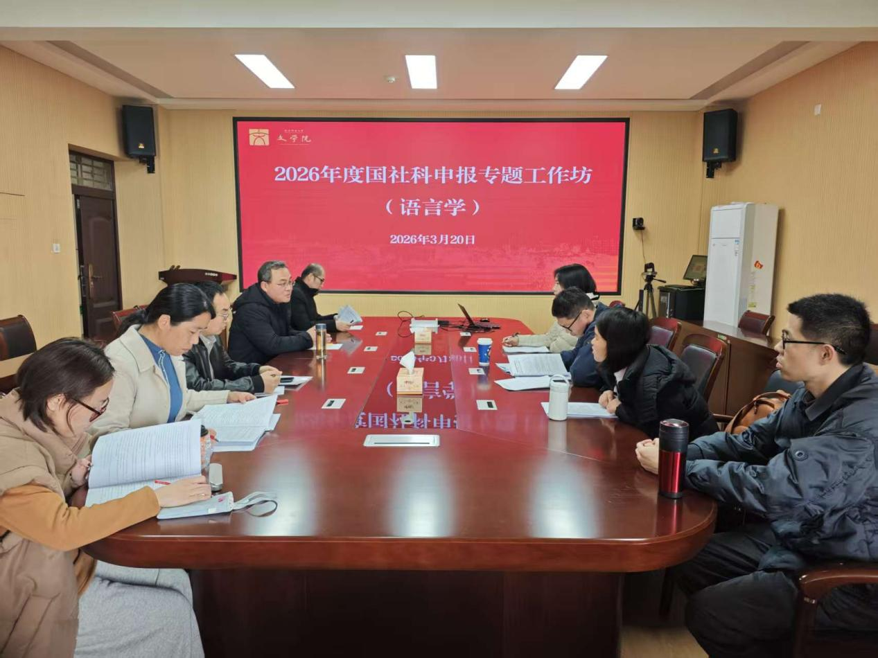 2026年3月20日下午,文学院“2026年度国社科项目申报专题工作坊(语言学)”第三轮论证会在人文楼307会议室顺利举行。工作坊召集人张言军教授主持会议,黄继省、杜新宇、牛利三位在国社科、省社科项目申报方面具有成熟经验的老师担任点评指导。本次论证会从下午2:30开始,持续至下午6:10,历时近四个小时。